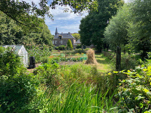 'Kunst werkt op de tuin. Vanaf april 2025 werken vier kunstenaars - Abby Junge, Marja Smeets, Joke Wiechers en Anna van Stuivenberg - met veel enthousiasme aan een speciaal project, met de educatieve moestuin als inspiratiebron. Voor de uitvoering is een verrassende samenwerking met twee Eemnesser partners in gang gezet. Al met al een 'werk in uitvoering', waarvan het resultaat tijdens de kunstroute zichtbaar zal worden.